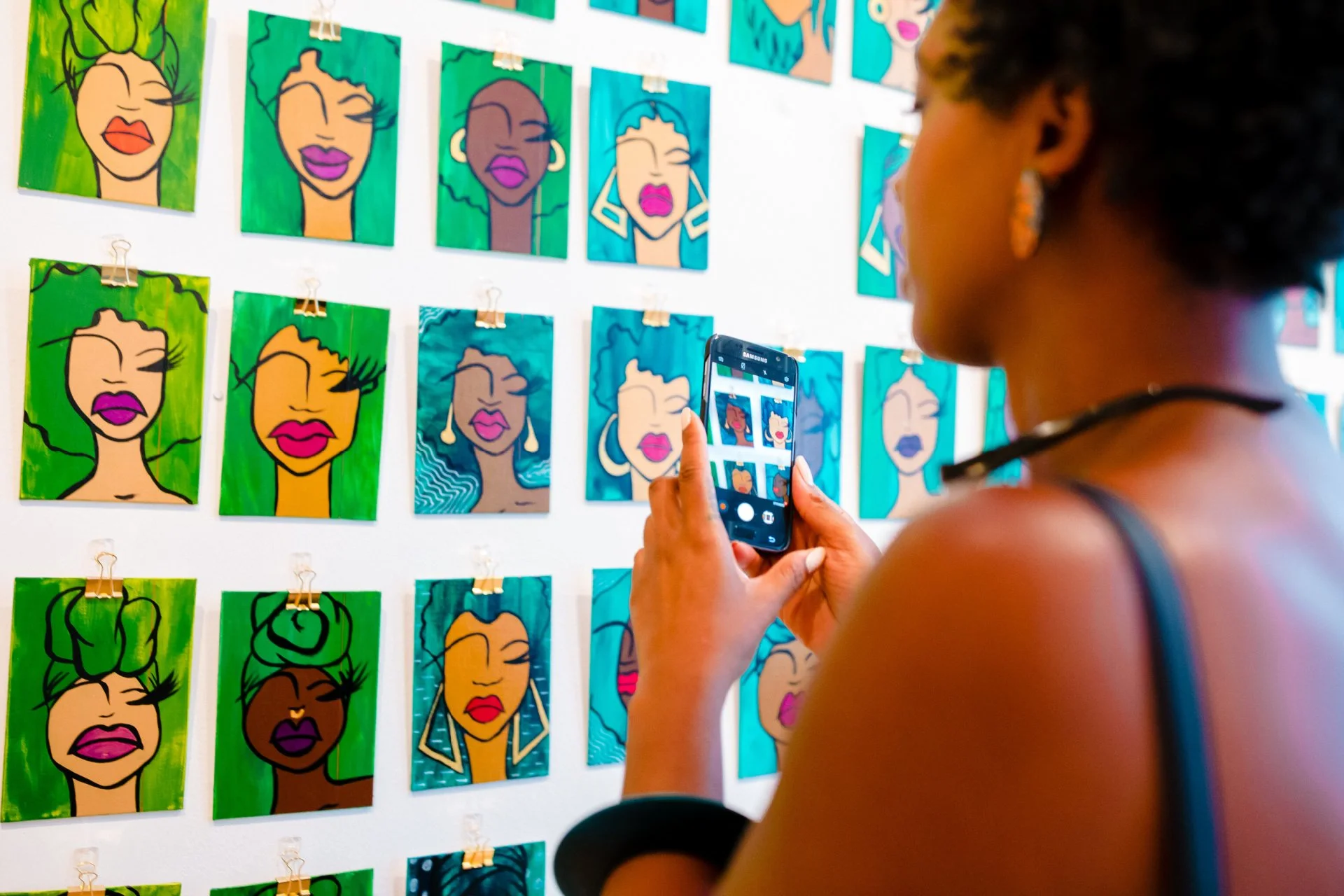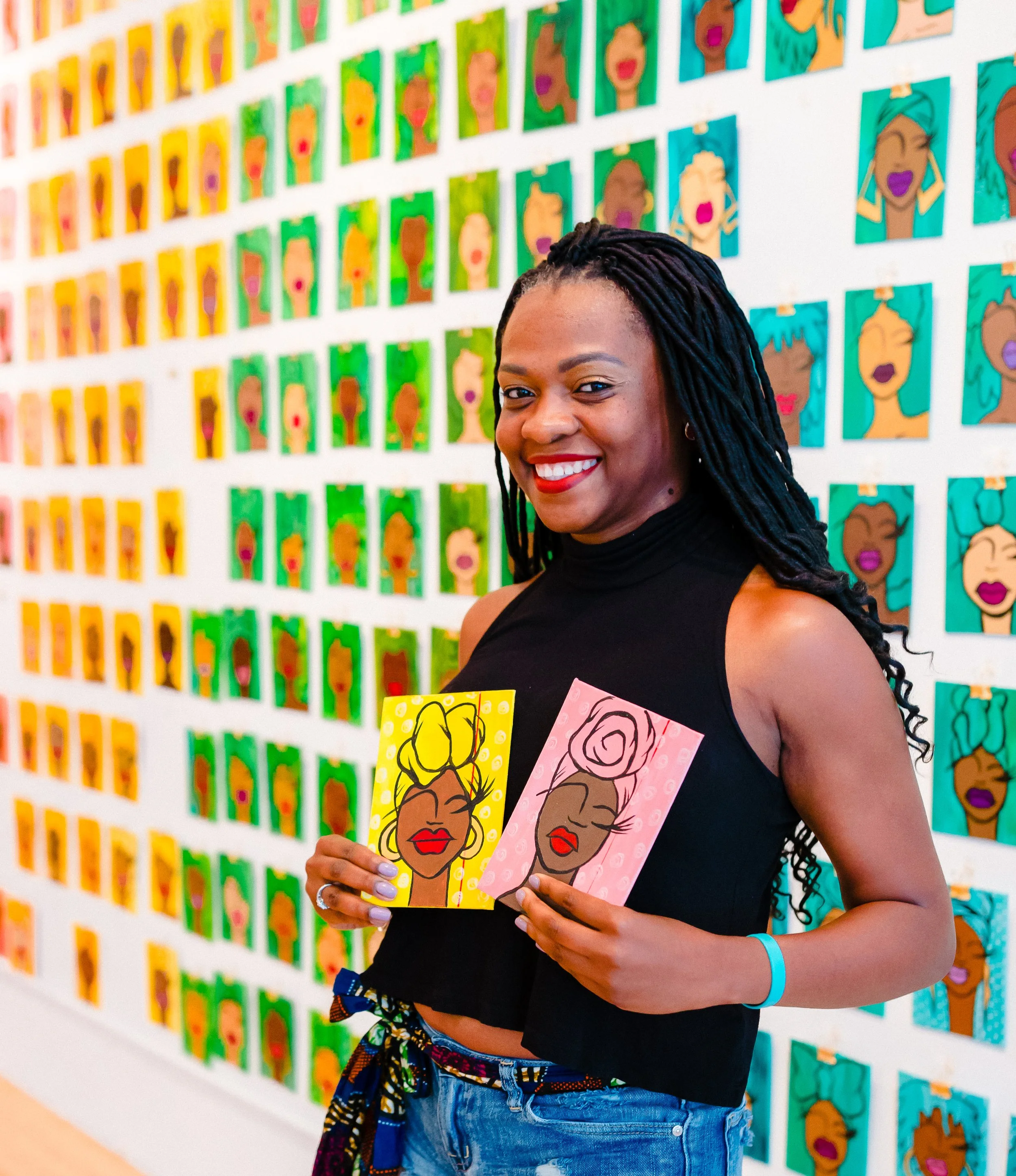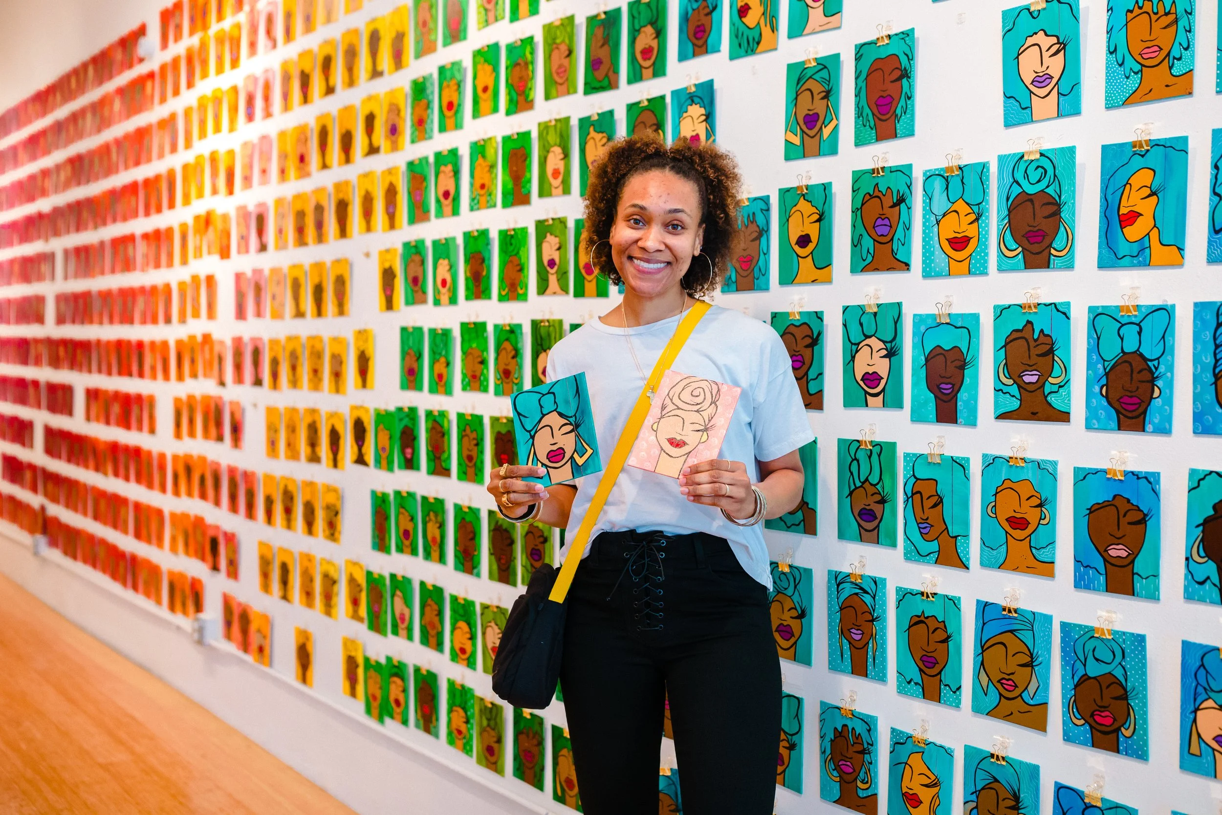 A 240 sq. ft. art installation comprised of 1,000 individual hand painted portraits of Black women. Each piece displayed a single red line connecting each piece to the next.